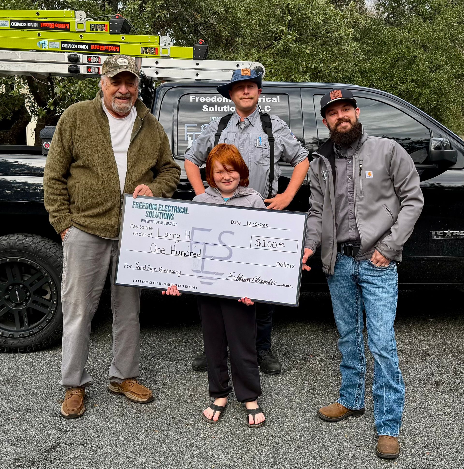 Our goal is to make this an ongoing, consistent way for our company’s growth to also create positive impact. We believe business should be about more than just providing a service; it should be about people and community. As Freedom Electrical Solutions continues to grow, we plan to expand this effort and, in the near future, begin matching donations when participants choose that option.